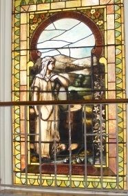 In an interesting side note: Over the years, many women of the church would rub the cheek of the woman at the well when they wished to become pregnant. If you look at the window, you will see that the color of the stained glass on her cheek has been rubbed away from this practice.