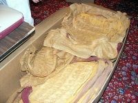 Now, our project was in full gear. When the box arrived, we found the sample to be perfect! The new foam was formed to fit our existing seat bottom and the cover was an exact match to the 1956 seats. In July of 2013, we sent a down payment for the work, which would require five to six months to complete. With a few strokes of brilliance, we have new seats in our sanctuary!