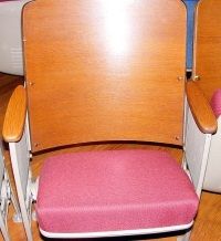 The topic of our deteriorating seats has been under consideration with the board of trustees since 2011. We all knew that many of us had experienced the occasional, unexpected goosing in the rump from errant, unruly and exposed springs and that the fabric of many seats was in tatters. But after 56 years of service, the seats were tired. At that time, the trustees decided it was best to delay plans of a costly replacement project until debt from the 2009-2010 capital improvements project was retired. Still eager, we proceeded to seek information about options available to us. We all were doubtful of the likelihood of finding replacements or whether or not they even could be made.